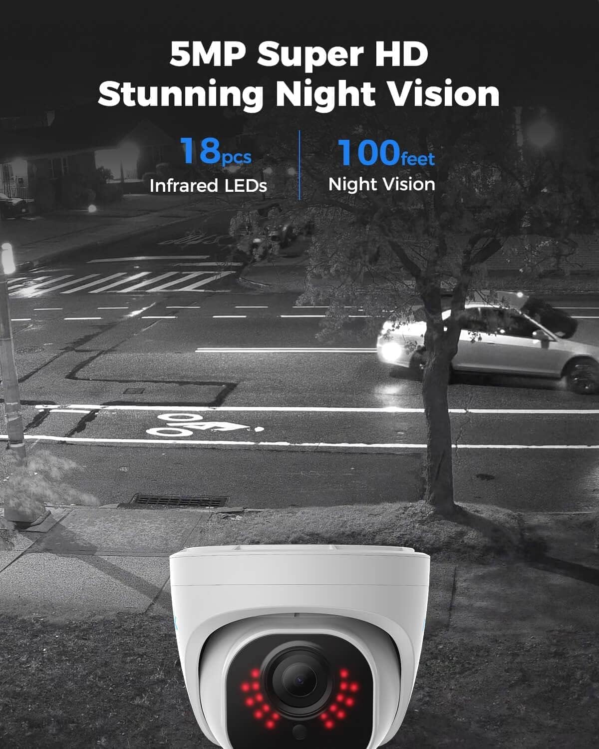 - CAPTURE CRIME FROM DETAILS: Discover potential crime has never been so easier with superior 5MP HD. With advanced IR lights, you can see up to 100ft in the dark, helping to protect your property and loved ones even at night.
