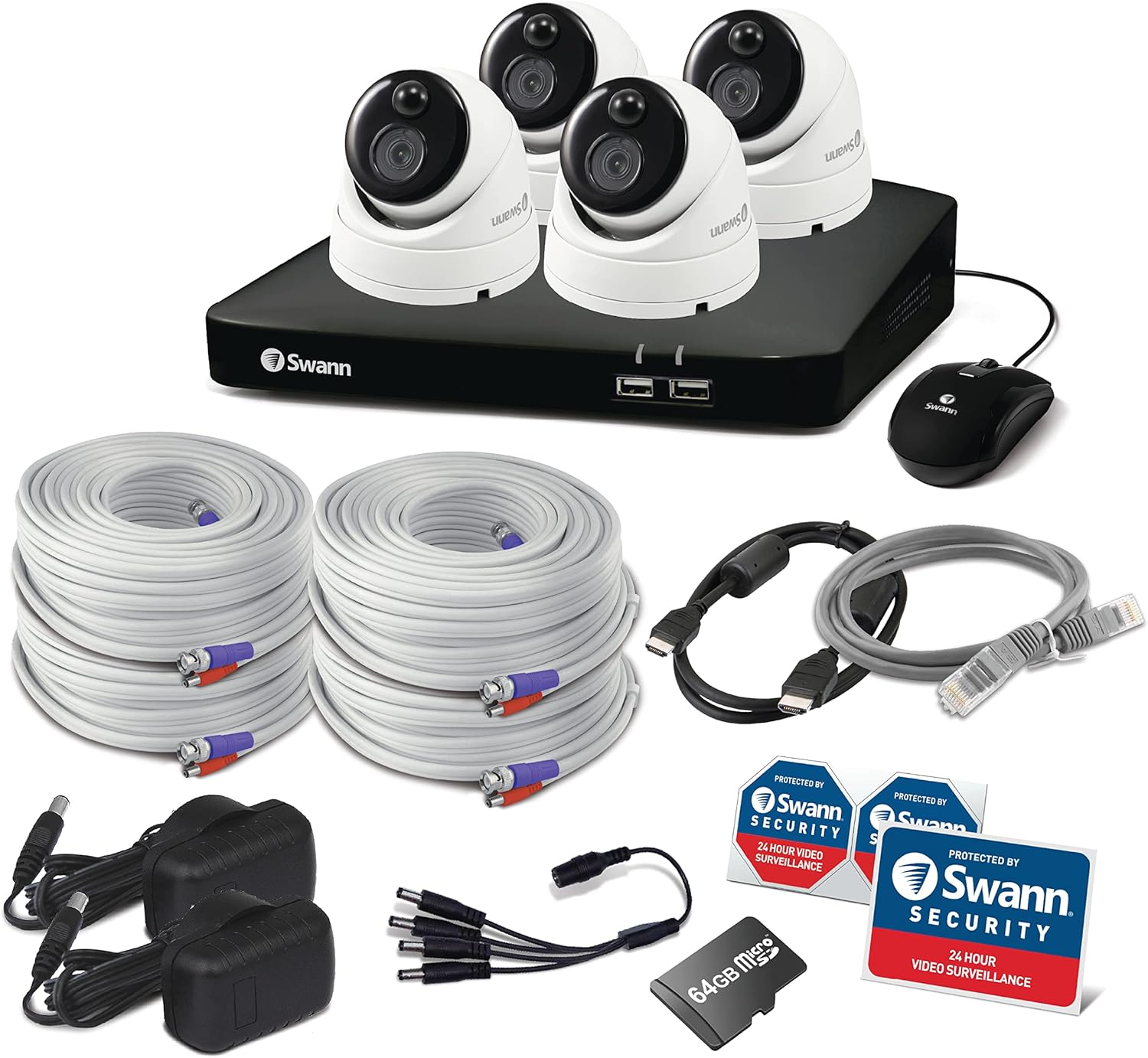 - 1080P DVR Security Camera System: Enhance your home security with the Swann Security Camera kits, which includes a pre-installed 64GB Micro SD Card ensuring plenty of room for your recordings. Capture clear and detailed footage of your indoor and outdoor areas, providing comprehensive surveillance for your home.